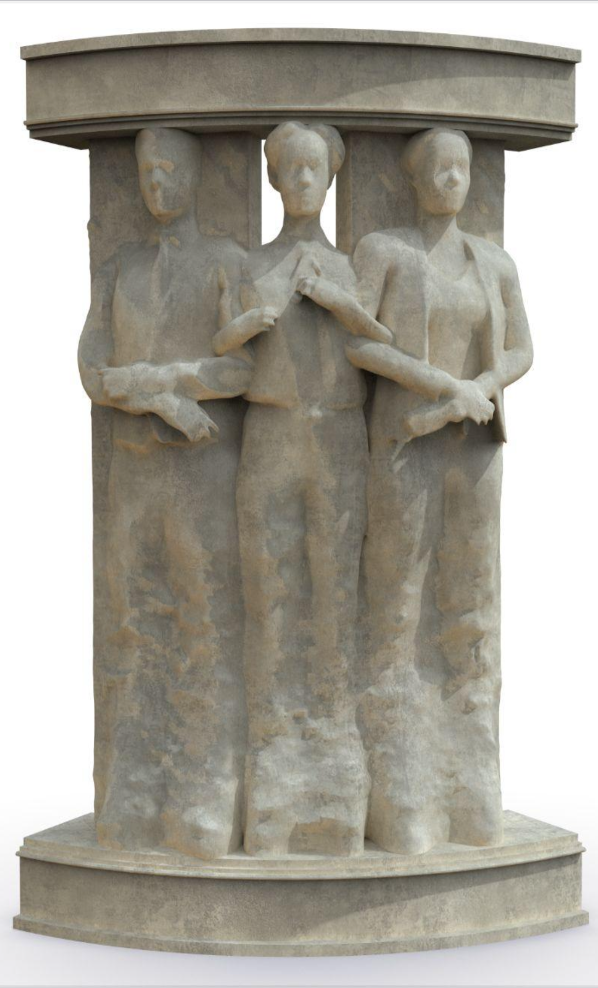 I was selected to create a memorial for Vel R. Phillips--one of the country's leading Black woman jurists, politicians, and civil rights leaders. The memorial titled 'I Didn’t Do It Alone’ will honor several pivotal aspects of Phillips’ life of service and her fight for liberty, while highlighting the core of her lifelong efforts. Throughout her career, Phillips often stated, “I Didn’t Do It Alone,” a reflection of her commitment to collective action. This memorial will feature three key components: two stone architectural sections with figurative sculptures, a bronze desk, and a bronze chair. Six outward-facing figures will represent citizens, activists, and leaders who worked with Phillips for change. The linked-arm citizens symbolize the unity of the 200 days of open housing protests and stand as protectors of liberty, justice, and democracy – the ideals Phillips fought for. The integration of the intimate office with the more traditional architecture highlights the importance of the personal in our politics.